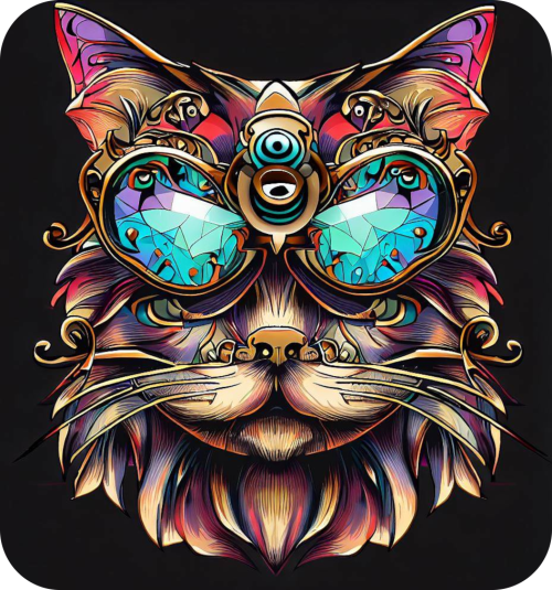 Indulge in the beauty of feline art with our exclusive collection of AI-designed t-shirts featuring artistic and colorful cat designs in various styles like Arabic, Moroccan, Metalwork, and Steampunk.