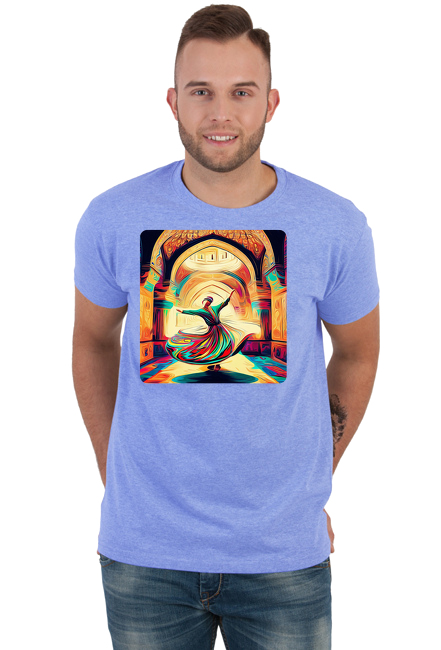 Step into a world of spiritual wonder with our unique collection of AI-designed t-shirts! Our graphics design features a mysterious dervish spinning in front of a mesmerizing and detailed Oriental temple, guaranteed to captivate your imagination.