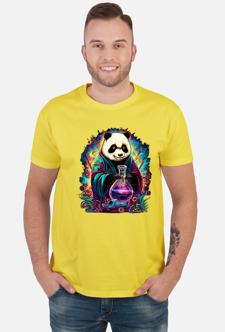 Dlaczego więc osiedlać się na zwykłych ubraniach, kiedy możesz mieć dzieło sztuki, które uosabia magię i kreatywność pandy alchemika?
