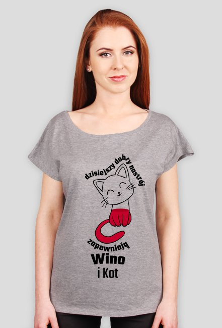Dzisiejszy dobry nastrój zapewniają wino i kot - koszulka SKU: Koszulka-damska-oversize_5o2mrr5r_3293761