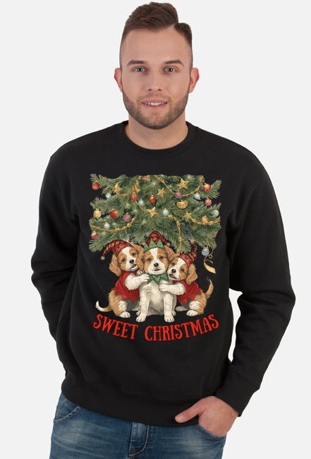 Świętuj Boże Narodzenie ze „Sweet Christmas”! Ten uroczy motyw z pieskami świetnie wygląda na koszulkach, kubkach, naklejkach i dekoracjach. Idealny pomysł na prezent dla miłośników zwierząt i świątecznej radości!Bluza Męska Klasyczna