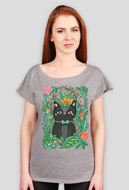 Koszulka damska - KOT W ZAROŚLACH SKU: Koszulka-damska-oversize_kd34j2v2_2378509