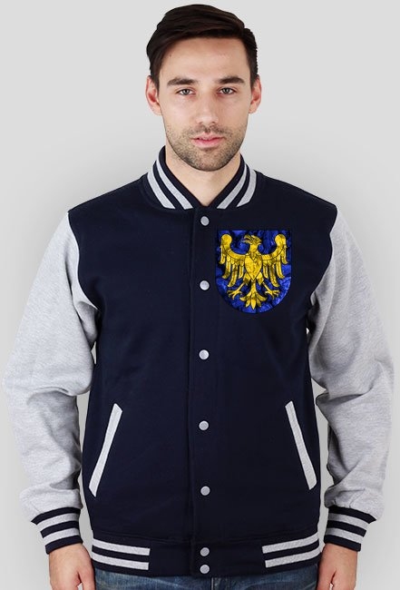 Bluza varsity jacket inspirowana amerykańskim stylem studenckim to opcja dla każdego, kto ceni sobie połączenie funkcjonalności z oryginalnym designem. Materiał, z którego została wykonana to wysokiej jakości bawełna, która ma przewiewną strukturę i daje uczucie miękkości i wygody. Posiada kontrastowe paski na ściągaczach u dołu bluzy i rękawów. Bluza jest zapinana na zatrzaski w kontrastowym kolorze.