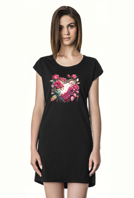 WAŻNE: Nadruki wykonane w technologii DTG. Sukienkę należy wyprać przed pierwszym założeniem, aby nabrała odpowiedniej miękkości. Prać ręcznie oraz prasować na lewej stronie. Ze względu na specyfikę nadruku zewnętrznego nie trzeć. Nie stosować wybielacza oraz środków agresywnych.