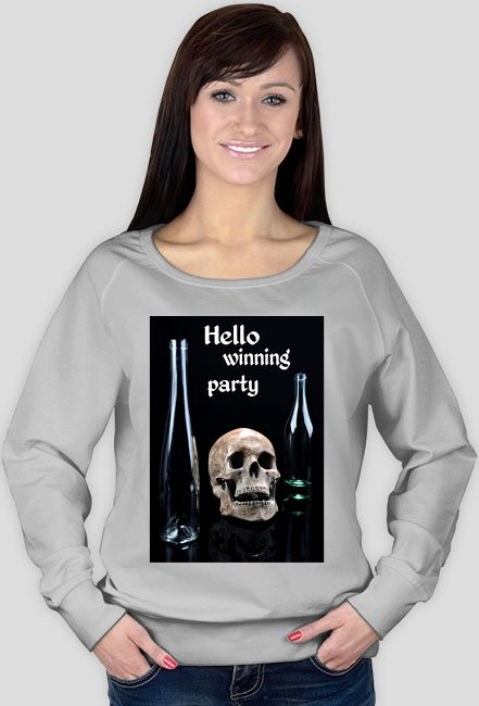 Modelka ma na sobie bluzę w rozmiarze S. Maksymalne wymiary nadruku to 30cm (szerokość)