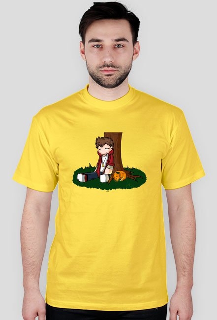 Model ma na sobie koszulkę w rozmiarze M. Maksymalne wymiary nadruku to 30cm (szerokość)