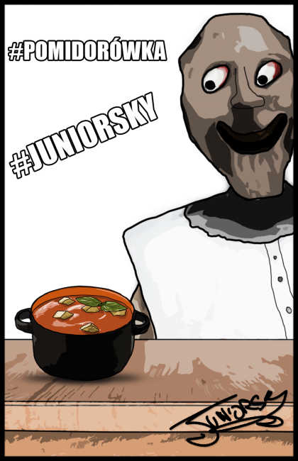 Produkt 'Granny', przedstawiający babcię, która patrzy na pomidorówkę, czyli ulubioną zupkę babci :)