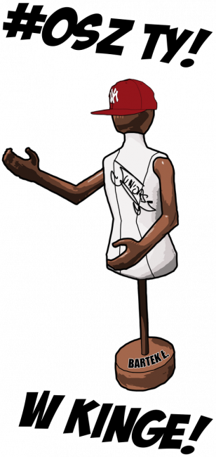 Koszulka z kultowym tekstem Osz Ty w Kingę, który padł z ust Juniorskiego podczas jednego z Livestreamów. Text przez społeczność bardzo ciepło się przyjął i jest jednym z najczęstszych 'przekleństw' używanych przez Juniorskiego jak i jego widownie.
