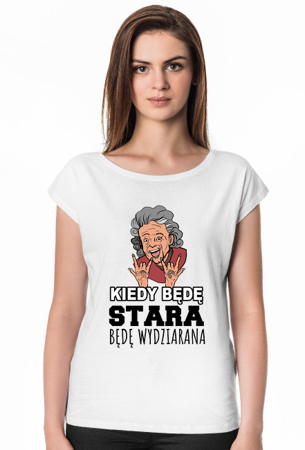 Damska koszulka o luźnym kroju „oversize” z dekoltem w łódeczkę. Zamówienia są wykonywane na koszulkach bardzo dobrej jakości, materiale grubym i trwałym.