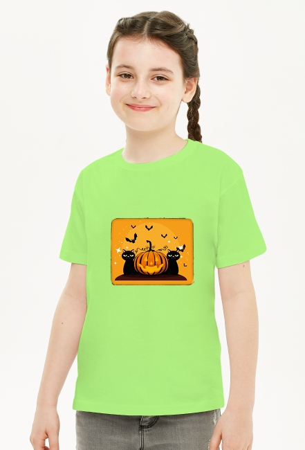 Dziewczynka- Halloween cats, czarne koty z dynią SKU: koszulka-dziewczynka-new_qodtkep8_4301739