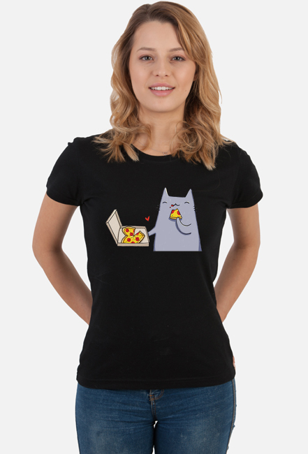 Koszulka damska- KOT WCINAJĄCY PIZZĘ SKU: koszulka-damska-K02_ivvrm6f3_4406494