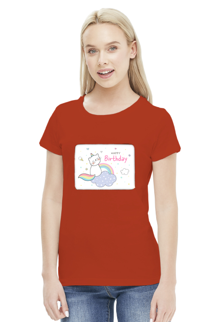 Urodzinowy kot na chmurce SKU: koszulka-damska_s1rh07sq_4300320