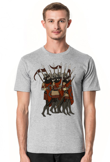 Koszulka z wizerunkiem armii Easterlingów w stylu średniowiecznej ilustracji – surowa, rytmiczna i pełna złowrogiego majestatu.
