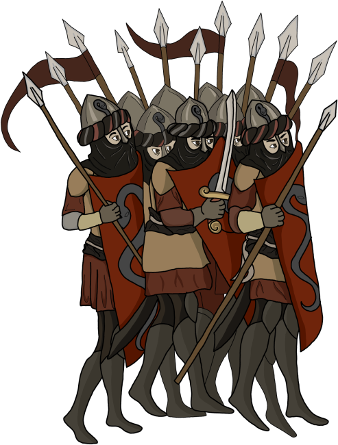 “From the shadowed lands of Rhûn they march, ranks unbroken and faces hidden. Crimson shields catch the dying light of the Eastern sea. They bear spears and silence—not for glory, but for command. So they were drawn by an unknown illuminator of Dol Amroth, who claimed to have seen them once—and lived to draw.”