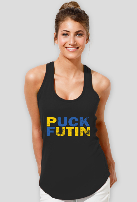 Koszulka -Napis puck futin w żółto niebieskich barwach SKU: koszulka-bokserka-damska_qkxsgdj9_4630904