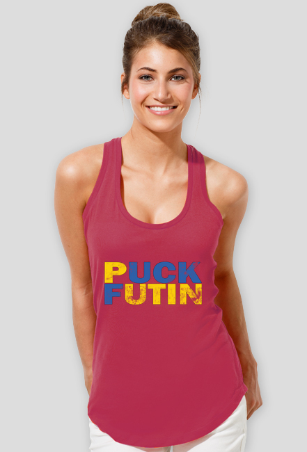 Koszulka -Napis puck futin w żółto niebieskich barwach SKU: koszulka-bokserka-damska_qkxsgdj9_4630904