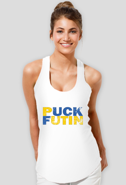 Koszulka -Napis puck futin w żółto niebieskich barwach SKU: koszulka-bokserka-damska_qkxsgdj9_4630904