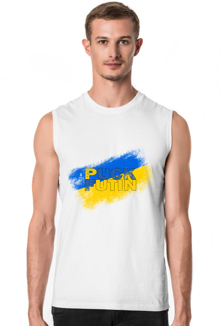 Koszulka -Napis puck futin z flagą Ukrainy w żółto niebieskich barwach SKU: koszulka-bez-r-kaw-w-m-ska_nn42uyie_4631032