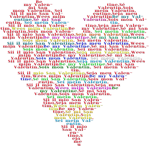 Koszulka -serce wypełnione tekstem w różnych językach i kolorach „bądź moją walentynką” SKU: koszulka-damska-K02_ib5gvme6_4629531