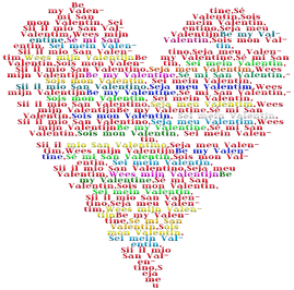 Kubek-serce wypełnione tekstem w różnych językach i kolorach „bądź moją walentynką” SKU: kubek_riyr5y6v_4629525