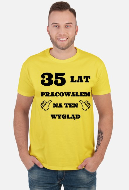 Koszulka 35 lat pracowałem na ten wygląd - prezent na 35 urodziny, czarny nadruk, różne kolory koszulki
