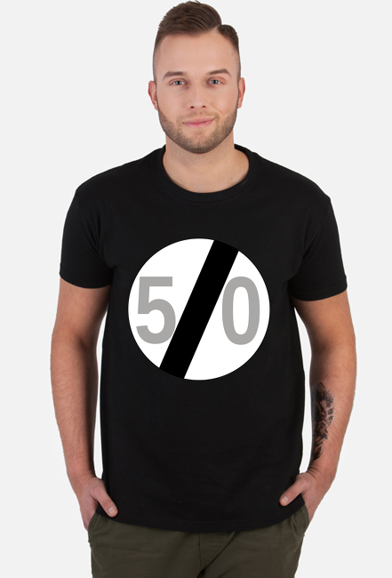 Prezent na 50 urodziny - koszulka ze znakiem likwidującym ograniczenie prędkości do 50