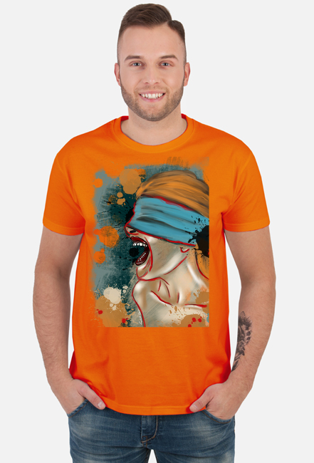 Klasyczna męska koszulka bawełniana z nadrukiem w technologi DTG.