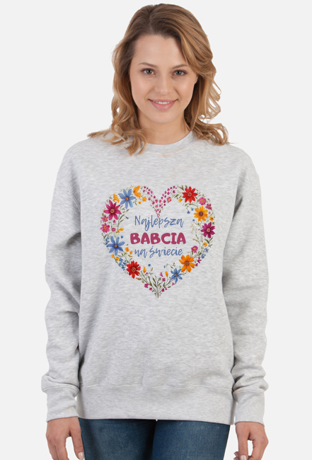 Dzień Babci to niezwykłe wydarzenie zasługuje na wyjątkowy podarunek! Nasza bluza nie tylko ozdobiona jest inspirującym napisem "Najlepsza babcia na świecie", ale także posiada uroczy rysunek kwiatowego serca. To prawdziwa esencja miłości i radości, która sprawi, że Twoja Babcia poczuje się wyjątkowo.