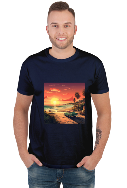 Widok zachodzącego słońca na plaży to obraz, który zawsze będzie przypominał o niezapomnianych chwilach spędzonych nad morzem. Bądź częścią tego magicznego momentu i nos tę koszulkę ze z dumą!