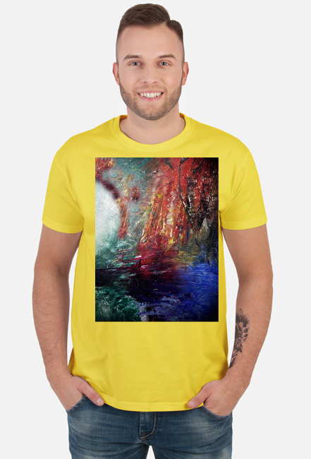 Klasyczna męska koszulka bawełniana z nadrukiem w technologi DTG.