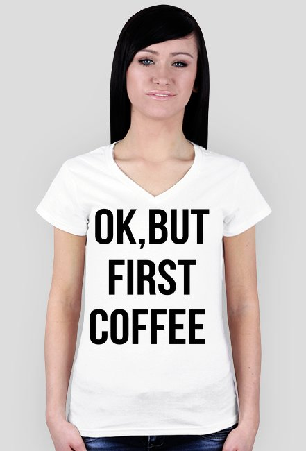 OK BUT FIRST COFFEE-tshirt damski SKU: koszulka-v-neck-damska_frlbxqrt_2875553
