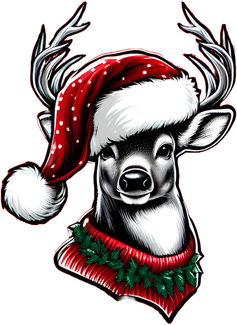 - Uroczy renifer w czerwonym stroju.