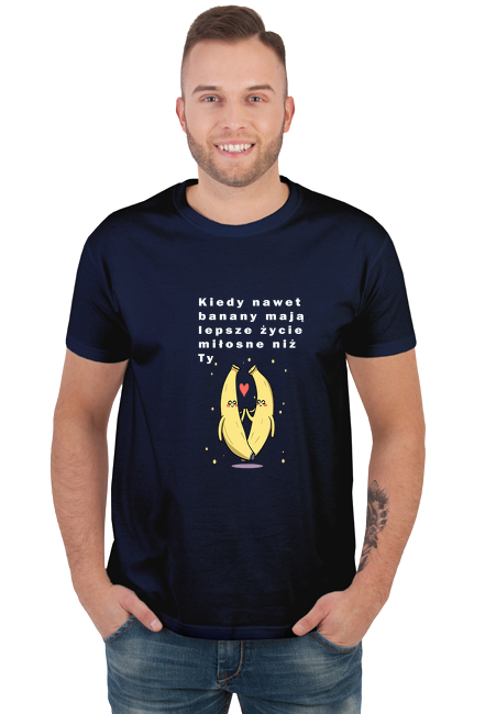 Ta koszulka to idealny wybór dla osób, które lubią śmiać się z życia, a zwłaszcza z miłosnych perypetii. Grafika przedstawia dwa zakochane banany, które trzymają się za „ręce” w uroczy sposób, tworząc serduszko. Obok znajduje się napis: „Kiedy nawet banany mają lepsze życie miłosne niż Ty” – to pełna humoru przestroga dla wszystkich singli, którzy mogą poczuć, że nawet owoce mają lepiej w miłosnym świecie!