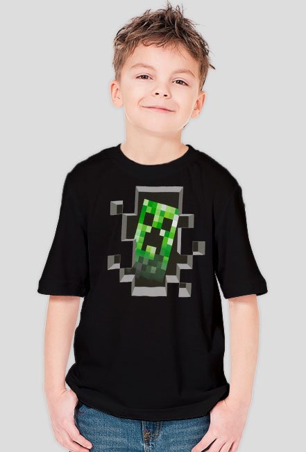 Koszulka ta przedstawia creepera w kopalni jest to stworek z gry minecraft uwielbianą przez młodzierz.