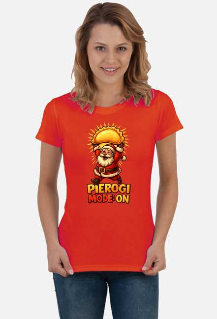 Humorystyczna koszulka damska ze Świętym Mikołajem i pierogami – obowiązkowa pozycja na polskie święta! Lekka, zabawna i bardzo „nasza”. Idealna na rodzinne spotkania, Wigilię, firmowe spotkania i jako prezent dla każdego, kto kocha pierogi (czyli… wszyscy).