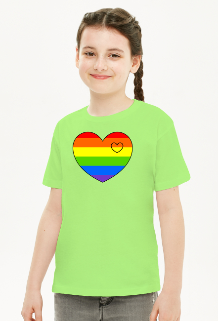 Koszulka z nadrukiem, tęczowe serce. Do kompletu można dokupić wersję dla mam, brata czy niemowlaka.