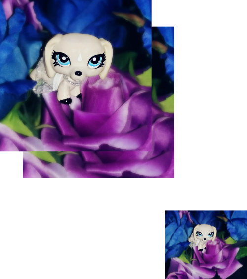 Nalean na tle fioletowych i niebieskich róż.