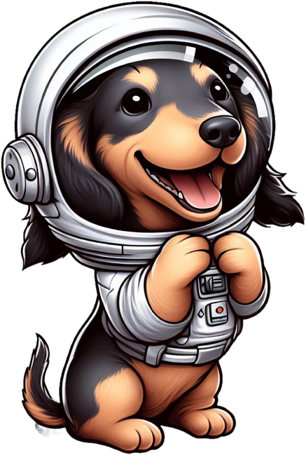 Ta urocza ilustracja jamnika przedstawia jamnika w kostiumie astronauty. Jamnik wygląda na podekscytowanego i gotowego do eksploracji kosmosu. Ten projekt jest idealny dla fanów jamników, astronautów i kosmosu.