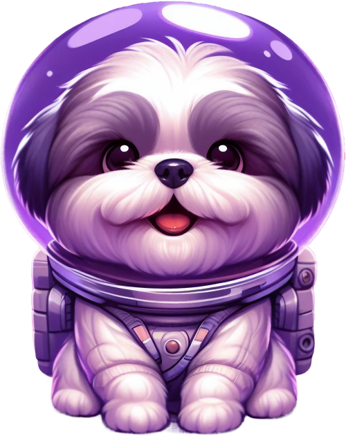 Ta urocza grafika przedstawia shi-tzu w skafandrze astronauty. Shi-tzu wygląda na podekscytowanego i gotowego do eksploracji kosmosu.
