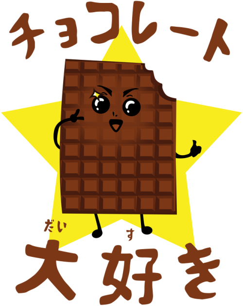 Czy jest na sali ktoś, kto nie lubi od czasu do czasu zjeść sobie kostki czekolady? Nieważne, czy to czekolada gorzka, czy mleczna, a może z nadzieniem; czy ją jesz, czy może raczej pijesz – jeśli ją uwielbiasz, to ta bluza jest dla Ciebie! Oto bluza z japońskim napisem, która sprawdzi się dla prawdziwego fana czekolady. Napis na bluzie to: チョコレート 大好き (だいすき)(chokoreeto daisuki), co oznacza "Kocham czekoladę". Wybierz ją dla siebie i obwieść całemu światu swoją miłość do słodkości albo podaruj bliskiej osobie, która podziela Twoją czekoladową pasję!