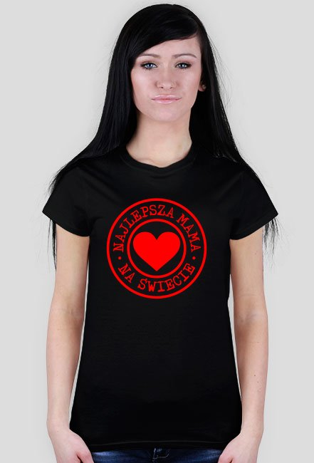 Bluzka z krótkim rękawem z napisem Najlepsza mama na świecie. Czerwony napis zdobi przód bluzki.