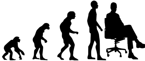 Ewolucja człowieka. Małpa, potem człowiek, a teraz... człowiek, który odpoczywa i siedzi.