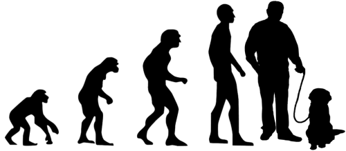 Ewolucja człowieka. Małpa, potem człowiek, a teraz..człowiek z najlepszym przyjacielem czyli psem. Prezent na urodziny, imieniny czy święta Bożego Narodzenia.