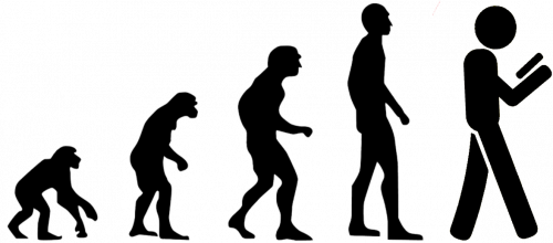 Ewolucja człowieka. Małpa, potem człowiek, a teraz... człowiek wpatrujący się w social media.
