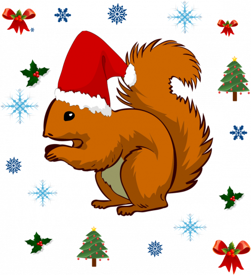 Świąteczna wiewiórka z czapką Świętego Mikołaja. Nie zapomnij o prezencie dla bliskich na Boże Narodzenie pod choinkę.
