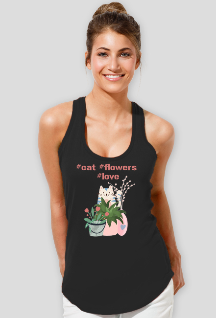 Bokserka Wesoły kot w kwiatach SKU: koszulka-bokserka-damska_19hs63bk_4637051