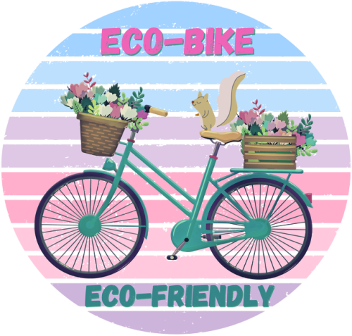Motyw Rower z koszami kwiatów na tle popularnego tła retro sunset w pastelowych kolorach z napisami eco-bike i eco-friendly to idealny wybór dla tych fanów dwóch kółek, którzy cenią sobie zarówno styl vintage, jak i dbałość o środowisko.