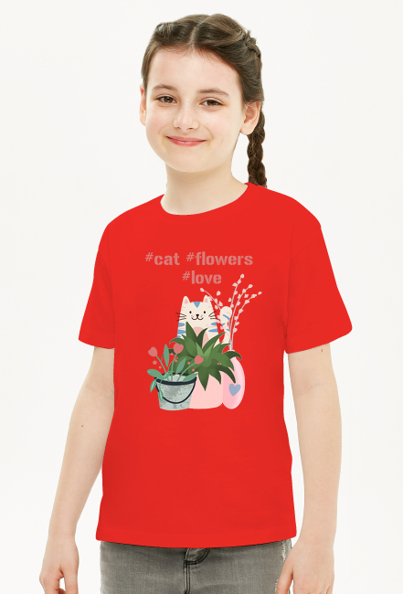 T-shirt dziecięcy Wesoły kot w kwiatach SKU: koszulka-dziewczynka-new_lfpxao5k_4637039