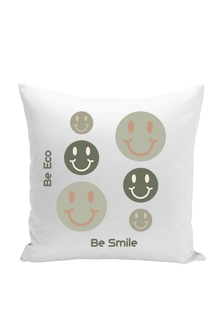 Ta poduszka z motywem face smiley w trzech odcieniach zieleni to doskonały wybór dla osób, które cenią sobie pozytywny i ekologiczny styl życia. Na poduszce znajdują się motyw kultowego symbolu uśmiechniętej buźki oraz napisy "Be Smile" i "Be Eco". Trzy odcienie zieleni, w których wykonana jest poduszka, nawiązują do naturalnych barw i symbolizują zrównoważony styl życia.