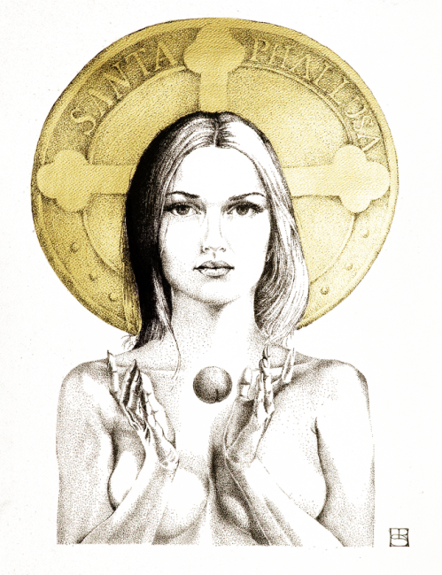 Rysunek tuszem i złotą ekoliną na kartonie A3+